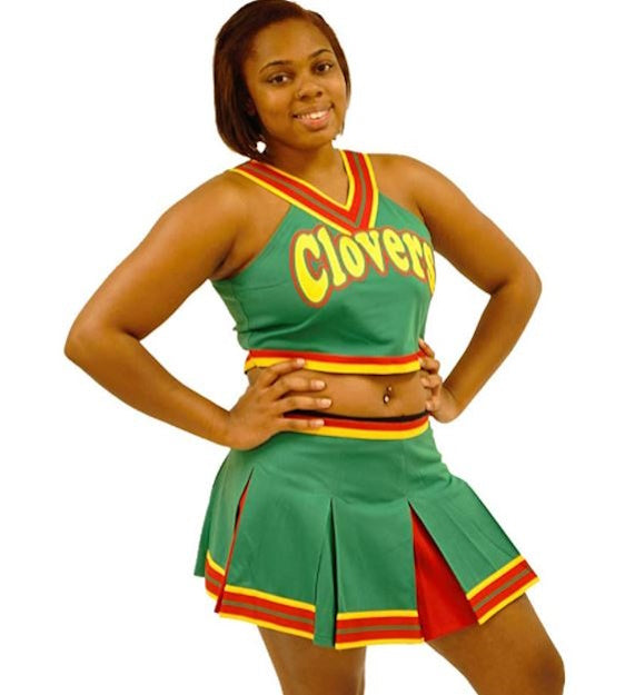 This Halloween Costume is inspired by the hit movie "Bring it On" and features "Clover" on the front in a bold stylized font. The costume made from same professional quality material as traditional cheerleading uniforms giving you the best quality available.